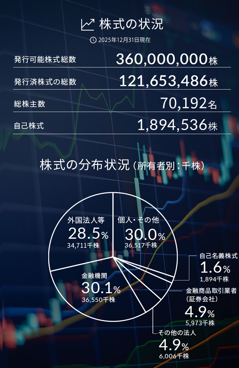 株主の皆様への配当の推移や、株主の状況、株式基本情報をご覧いただけます。