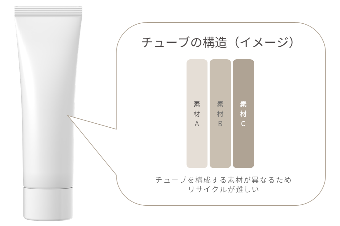 これまでのスキンケア商品の容器は、赤ちゃんのお肌に触れるクリーム等の品質を保つために、プラスチックの間にバリア機能を持つ異なる素材を挟み込む「多層構造」が一般的でした。しかし、この構造は容器を素材ごとに分けることができず、リサイクルが難しいという課題がありました。