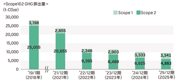 19/1月期~22/12月期についてはエネルギー起源のCO2のみを算定対象としています。23/12月期からはメタンや亜酸化窒素を含むエネルギー起源以外の温室効果ガスについても算定対象としています。