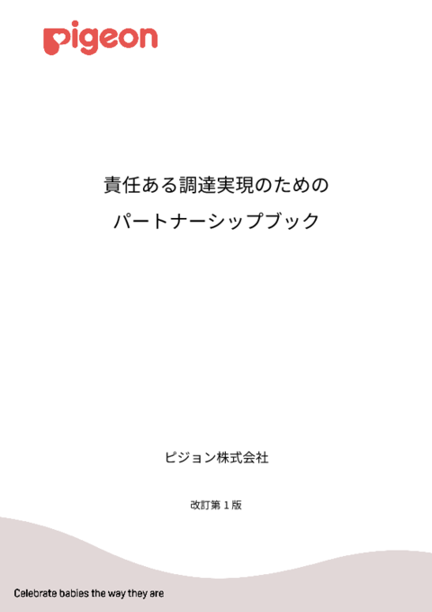 パートナーの皆様との継続的な協働関係を築き、共に成長し、共に社会的責任を果たしていくため、ピジョングループの「責任ある調達(CSR調達)」を明確に示した「責任ある調達実現のためのパートナーシップブック」を2025年に作成しました。