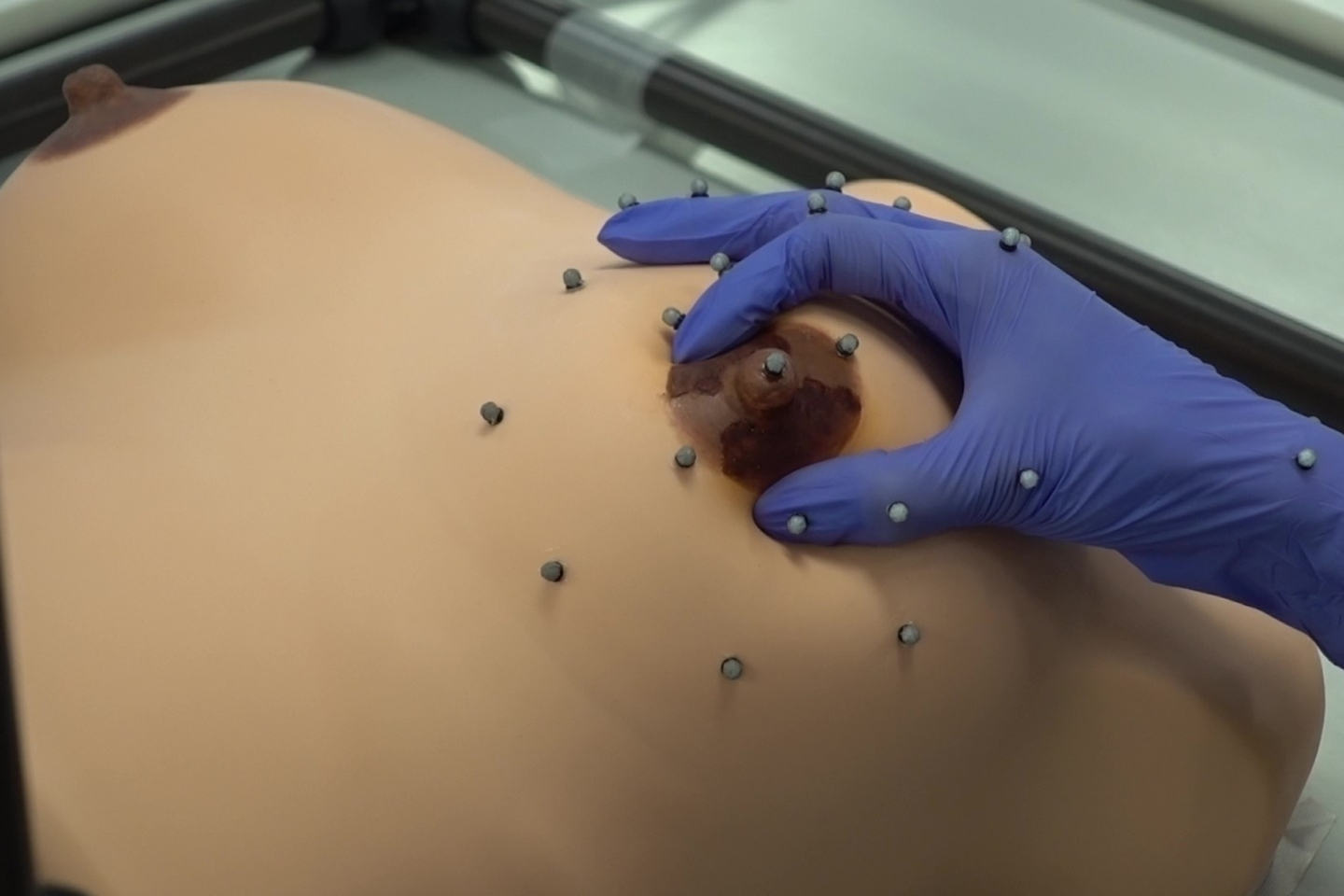 授乳中のママの乳房ケアの方法として、助産師の方による乳房マッサージやさく乳器の使用などがあります。乳房マッサージは助産師の方が指でママの乳房を押す動作によって、そしてさく乳器は吸引による陰圧によって、乳房から母乳が出ます。ピジョンは母乳が出るメカニズムを研究・解明していく一歩として、乳房マッサージとさく乳器が乳房に及ぼす力学的作用を明らかにする研究を行いました。